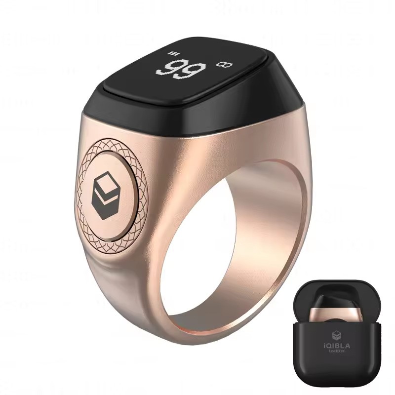 IQibla Metal Alloy Smart Praise Zikr Ring for Muslims Tasbih Digital Counter Tasbeeh Prayer Time Vibration Reminder Waterproof